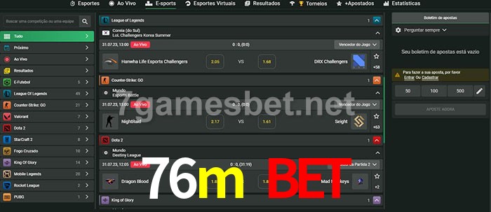 O 76m bet oferece uma grande seleção de opções de apostas em e-sports com probabilidades competitivas